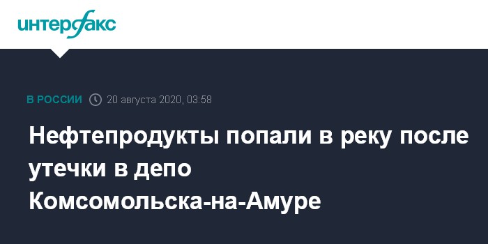 Москва. 20 августа. INTERFAX.RU - Нефтепродукты попали в реку Бочин из-за утечки в депо Комсомольска-на-Амуре, сообщила дальневосточная транспортная прокуратура.