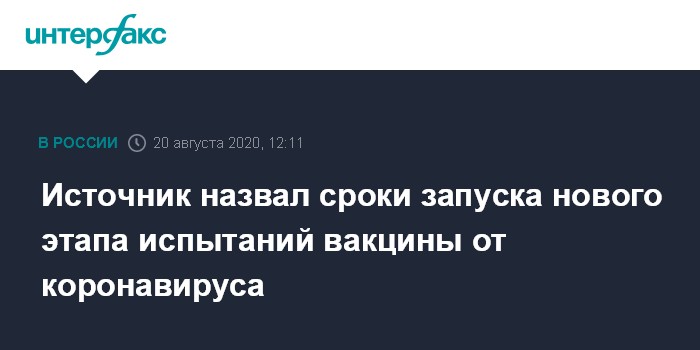 Источник назвал сроки запуска нового этапа испытаний вакцины от коронавируса