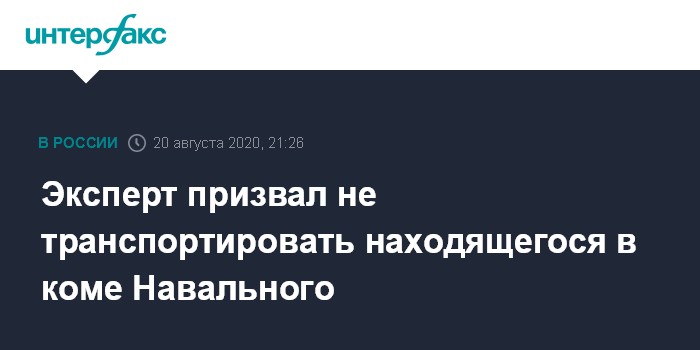 Москва. 20 августа. INTERFAX.RU - Профессор кафедры нервных болезней МГМСУ имени Евдокимова Минздрава России Алексей Савин заявил, что транспортировать оппозиционера Алексея Навального, который находится в коме, опасно, лучше от этого воздержаться.
