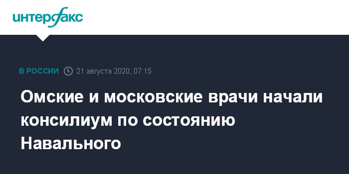 Москва. 21 августа. INTERFAX.RU - Врачи Омской больницы скорой медицинской помощи совместно с прибывшими из Москвы специалистами проводят консилиум по состоянию оппозиционера Алексея Навального, сообщили агентству "Интерфакс" в пресс-службе областного Минздрава.