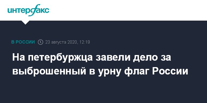Москва. 23 августа. INTERFAX.RU - Жителя Санкт-Петербурга подозревают в надругательстве над флагом РФ, которое произошло в День Государственного флага России, сообщил "Интерфаксу" в воскресенье информированный источник.