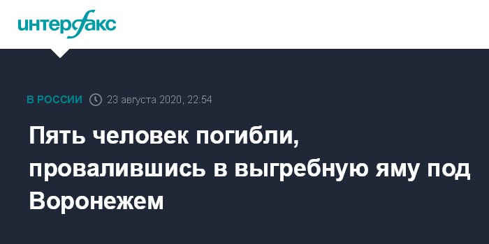 Москва. 23 августа. INTERFAX.RU - Трое взрослых и двое детей погибли, провалившись в выгребную яму в Новоусманском районе Воронежской области, сообщил журналистам представитель районной администрации.