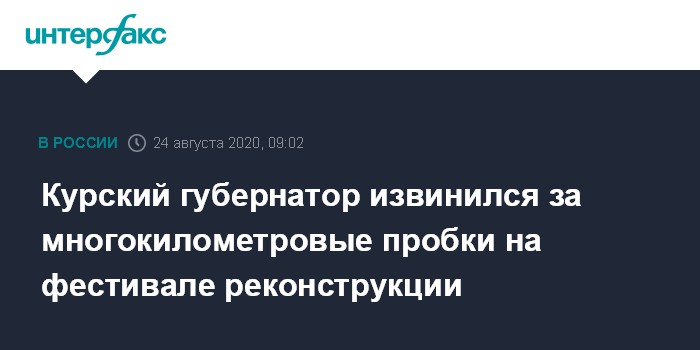Москва. 24 августа. INTERFAX.RU - Губернатор Курской области Роман Старовойт извинился за пробки, возникшие на подъездах к месту проведения фестиваля исторической реконструкции "Бой на Северном фасе". Из-за пробок многие желающие не успели посмотреть битву.