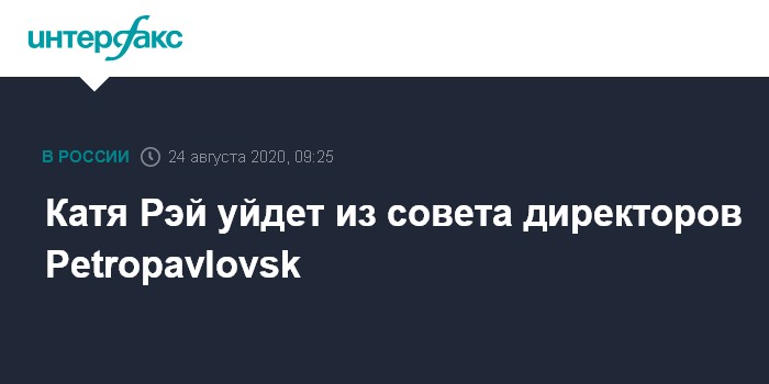Москва. 24 августа. INTERFAX.RU - Независимый директор Petropavlovsk Катя Рэй по личным причинам покидает совет директоров, сообщила компания.
