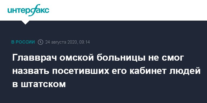 Москва. 24 августа. INTERFAX.RU - Главврач Омской больницы скорой медицинской помощи №1 Александр Мураховский не смог объяснить, почему, пока в реанимации лежал Алексей Навальный, в его кабинете находились люди в штатском, которых СМИ определили как силовиков.