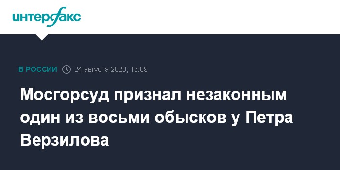 Москва. 24 августа. INTERFAX.RU - Издатель "Медиазоны" Петр Верзилов сообщил, что Мосгорсуд признал незаконным один из обысков, прошедших у него в июне по делу о московских протестах прошлого года.