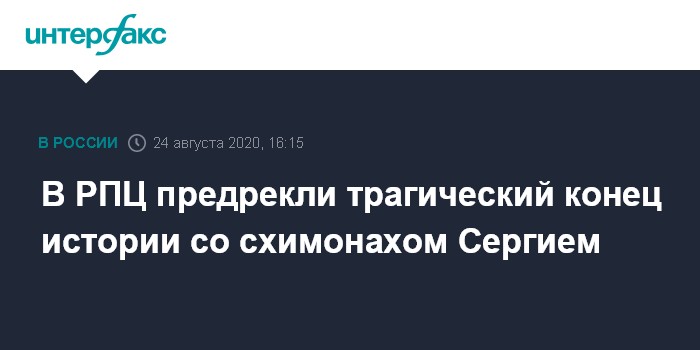Москва. 24 августа. INTERFAX.RU - В Екатеринбургской епархии предвидят трагический конец ситуации вокруг отказа схимонаха Сергия (Романова) подчиниться решению церковных властей.