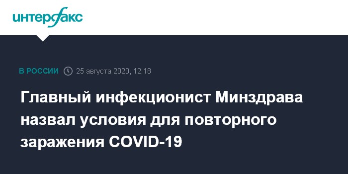 Москва. 25 августа. INTERFAX.RU - Повторно заразиться коронавирусом можно, но такие случаи крайне редки, заявил главный инфекционист Минздрава, профессор Сеченовского университета Владимир Чуланов.