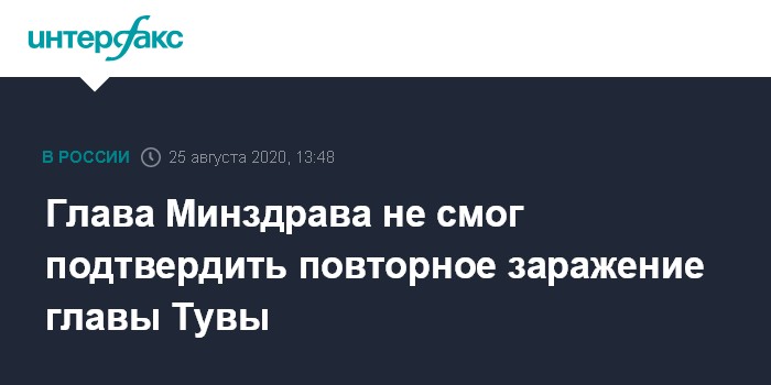 Москва. 25 августа. INTERFAX.RU - В федеральном Минздраве нет данных о том, что у главы Тувы Шолбана Кара-оола подтвердилось повторное заболевание корнавирусной инфекцией. Об этом заявил министр здравоохранения Михаил Мурашко.