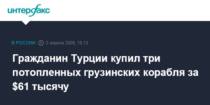 Гражданин Турции купил три потопленных грузинских корабля за $61 тысячу