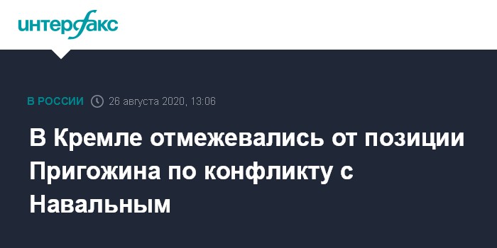 Москва. 26 августа. INTERFAX.RU - Позиция бизнесмена Евгения Пригожина в связи со случившимся с Алексеем Навальным не имеет никакого отношения к Кремлю, заявил пресс-секретарь президента Дмитрий Песков.