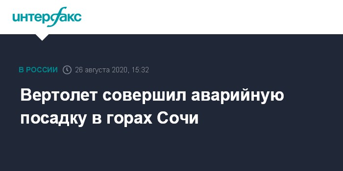 Москва. 26 августа. INTERFAX.RU - В районе хребта Аибга в Сочи совершил аварийную посадку вертолет, на борту которого, по предварительным данным, находились четыре человека, сообщил "Интерфаксу" информированный источник.