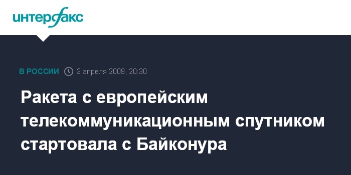 Москва. 3 апреля. INTERFAX.RU - Российская ракета-носитель "Протон-М" запущена с космодрома Байконур (Казахстан). Она выведет на орбиту европейский коммерческий телекоммуникационный спутник Eutelsat W2A.