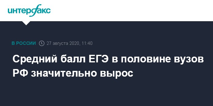 Москва. 27 августа. INTERFAX.RU - В этом году средний балл ЕГЭ поступающих в вузы вырос в половине высших учебных заведений страны, несмотря на особенности приемной кампании этого года, которая из-за пандемии проходила в удаленном формате.