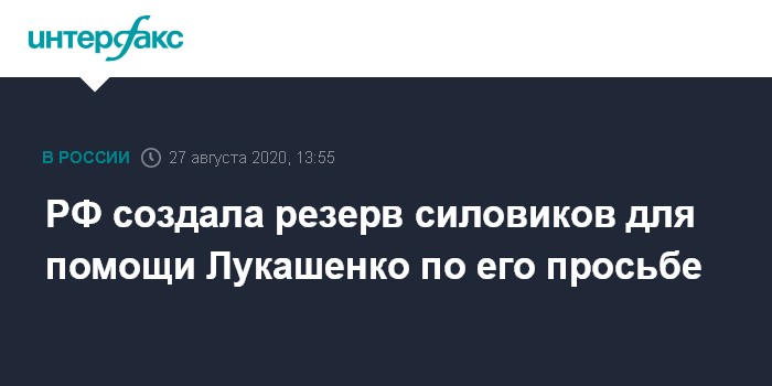 Москва. 27 августа. INTERFAX.RU - Россия по просьбе белорусского президента Александра Лукашенко сформировала резерв сотрудников правоохранительных органов. Минск обещал, что не будет задействовать их, пока ситуация не выйдет из-под контроля, рассказал президент РФ Владимир Путин.