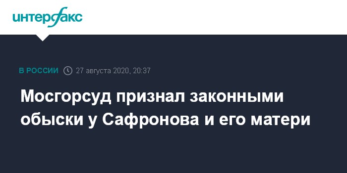Москва. 27 августа. INTERFAX.RU - Мосгорсуд оставил без удовлетворения жалобы защиты на постановления нижестоящего суда о разрешении обысков дома у журналиста Ивана Сафронова и его мамы.
