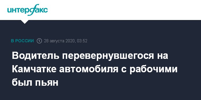 Москва. 28 августа. INTERFAX.RU - Водитель вахтового автомобиля "НЕФАЗ", при опрокидывании которого на Камчатке пострадали 11 человек, был пьян, сообщает пресс-служба управления МВД России по Камчатскому краю.