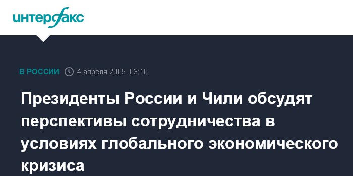 Президенты России и Чили обсудят перспективы сотрудничества в условиях глобального экономического кризиса
