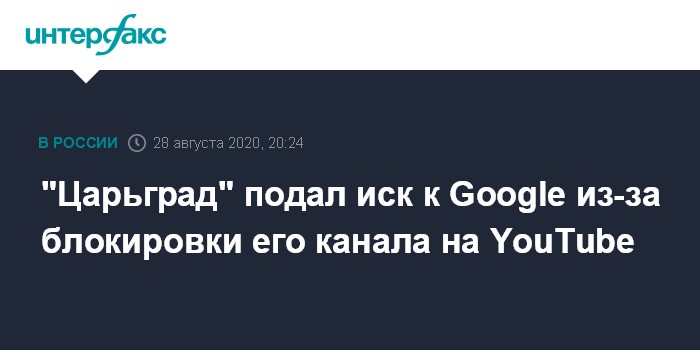 Москва. 28 августа. INTERFAX.RU - "Царьград ТВ" обратился в Арбитражный суд Москвы с иском, в котором требует от Google восстановить свой аккаунт на YouTube и возместить недополученные в связи с его удалением средства от монетизации контента. Об этом сообщил в пятницу "Интерфаксу" Валерий Рукобратский, пресс-секретарь основателя телеканала Константина Малофеева.