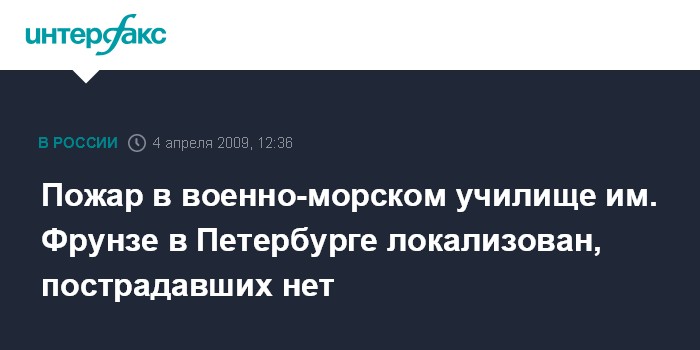 Москва. 4 апреля. INTERFAX.RU - Пожар в здании военно-морского училища им. Фрунзе в Санкт-Петербурге локализован, сообщили "Интерфаксу" в Главном управлении МЧС по городу.