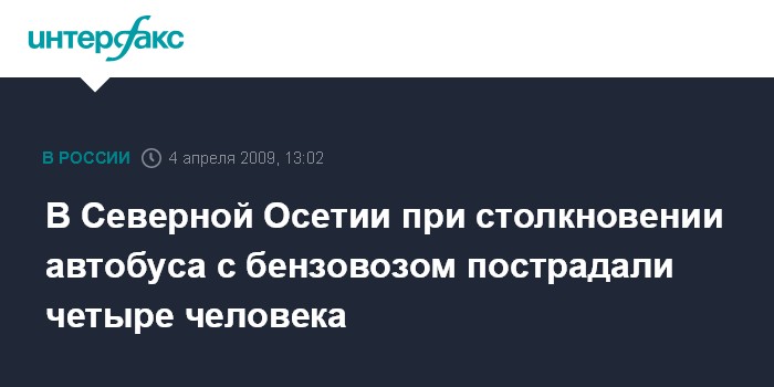 Москва. 4 апреля. INTERFAX.RU - В полдень в Алагирском районе Северной Осетии произошло дорожно-транспортное происшествие с участием автобуса, четверо человек пострадали.