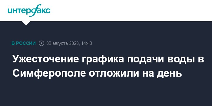 Москва. 30 августа. INTERFAX.RU - Власти Симферополя решили перенести на сутки применение более жестких графиков подачи воды населению, введенных из-за засухи.