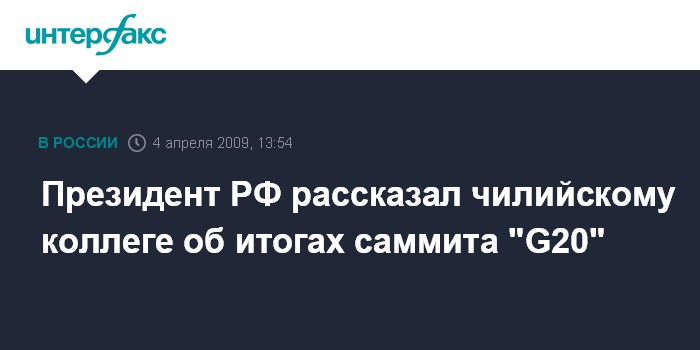 Москва. 4 апреля. INTERFAX.RU - Президент РФ Дмитрий Медведев проинформировал президента Чили Мишель Бачелет об итогах саммита "большой двадцатки" в Лондоне.