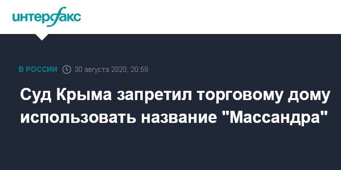 Москва. 30 августа. INTERFAX.RU - Арбитражный суд Крыма частично удовлетворил иск производственно-аграрному объединению "Массандра" (крупнейший винзавод республики) и запретил одноименному торговому дому использовать это название.