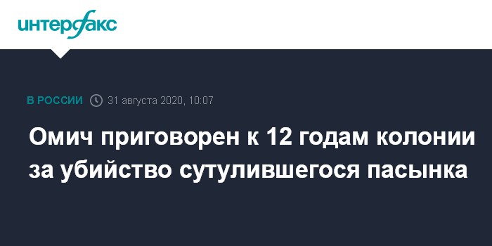 Москва. 31 августа. INTERFAX.RU - В Омской области суд приговорил 31-летнего Владимира Нетесу к 12 годам колонии строгого режима за убийство семилетнего пасынка. Об этом сообщила областная прокуратура.
