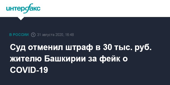 Суд отменил штраф в 30 тыс. руб. жителю Башкирии за фейк о COVID-19