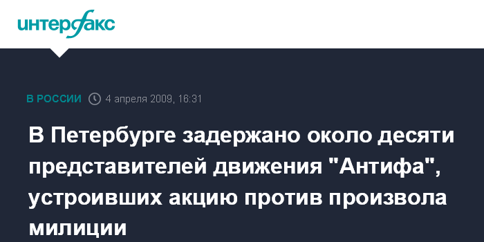 В Петербурге задержано около десяти представителей движения "Антифа", устроивших акцию против произвола милиции