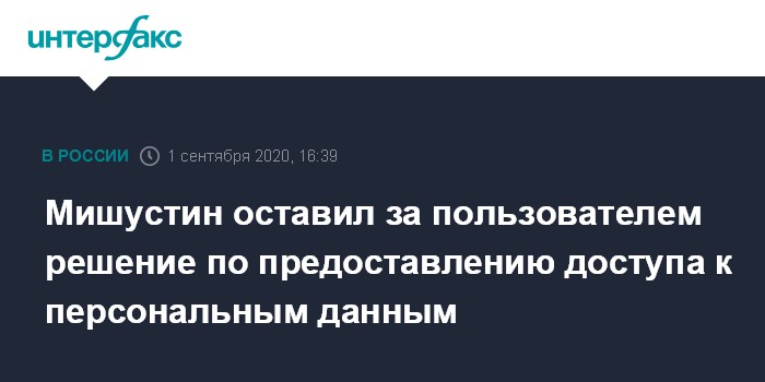 Москва. 1 сентября. INTERFAX.RU - Премьер-министр РФ Михаил Мишустин считает, что окончательно право доступа к тем или иным персональным данным должен предоставлять сам пользователь.