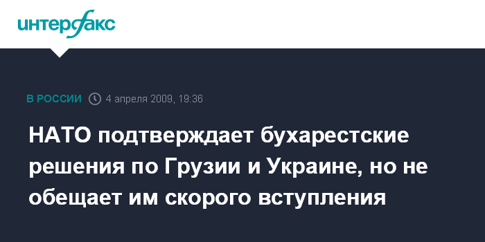 НАТО подтверждает бухарестские решения по Грузии и Украине, но не обещает им скорого вступления