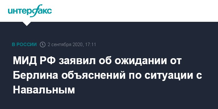 МИД РФ заявил об ожидании от Берлина объяснений по ситуации с Навальным
