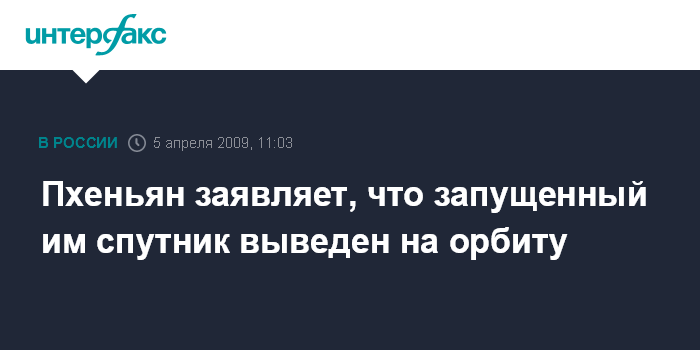 Лондон. 5 апреля. INTERFAX.RU - Государственные СМИ КНДР объявили об успешном выводе на околоземную орбиту северокорейского искусственного спутника, запущенного утром в воскресенье, сообщает Би-би-си.