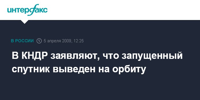 Лондон. 5 апреля. INTERFAX.RU - Государственные СМИ КНДР объявили об успешном выводе на околоземную орбиту северокорейского искусственного спутника, запущенного утром в воскресенье.