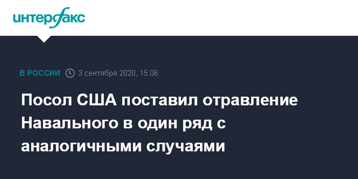 Посол США поставил отравление Навального в один ряд с аналогичными случаями