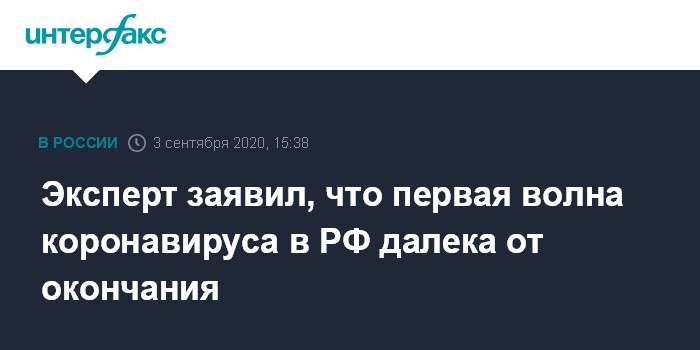 Москва. 3 сентября. INTERFAX.RU - Россия пока не справилась с первой волной COVID-19, поэтому осенний подъем заболеваемости, который ждут специалисты, - это все еще продолжение текущей волны, а не новая, вторая волна, заявил врач-инфекционист, ведущий научный сотрудник Института имени Гамалеи Минздрава Николай Малышев.