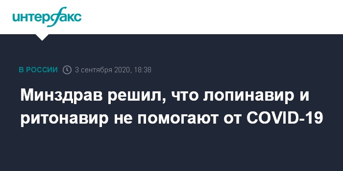 Минздрав решил, что лопинавир и ритонавир не помогают от COVID-19