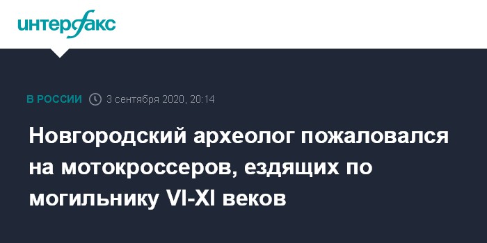 Москва. 3 сентября. INTERFAX.RU - Мотоциклисты в Новгородской области проложили трассу по могильнику VI-XI веков, сообщил новгородский археолог Павел Колосницын в соцсети.