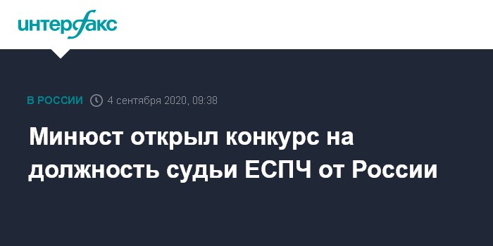 Москва. 4 сентября. INTERFAX.RU - Минюст открыл конкурс для претендентов на должность судьи Европейского суда по правам человека (ЕСПЧ) от России, которая станет вакантной в 2022 году.