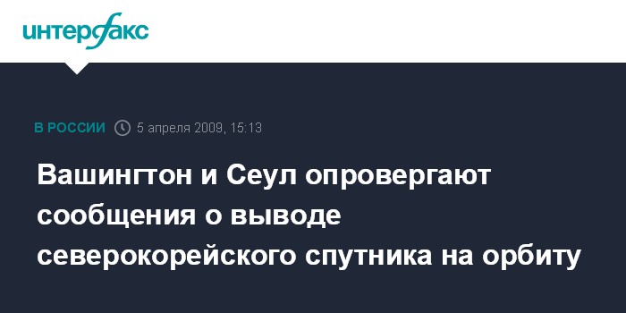 Вашингтон/Москва. 5 апреля. INTERFAX.RU - США и Южная Корея назвали "провокацией" информацию официального Пхеньяна о том, что запущенный в воскресенье северокорейский спутник успешно выведен на орбиту.