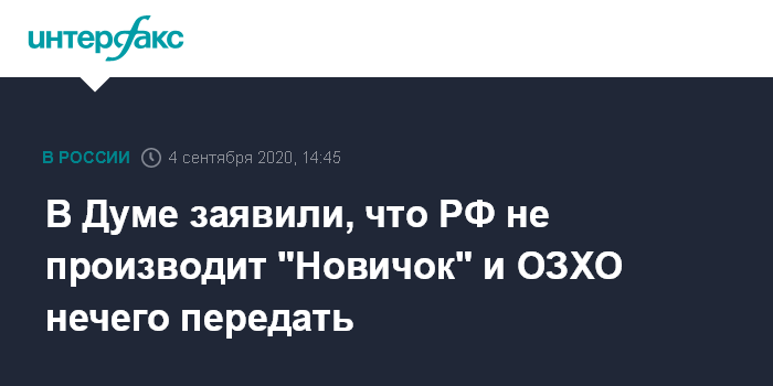 В Думе заявили, что РФ не производит "Новичок" и ОЗХО нечего передать