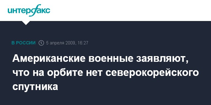 Вашингтон. 5 апреля. INTERFAX.RU - В Североамериканском командовании аэрокосмической обороны опровергли сообщения о выходе на орбиту северокорейского спутника, который, по версии Пхеньяна, был запущен в воскресенье, сообщает СNN.