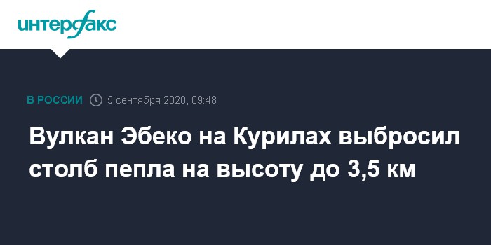Москва. 5 сентября. INTERFAX.RU - Выброс пепла произошел в субботу на вулкане Эбеко, расположенном на северокурильском острове Парамушир Сахалинской области, сообщила пресс-служба регионального главка МЧС.