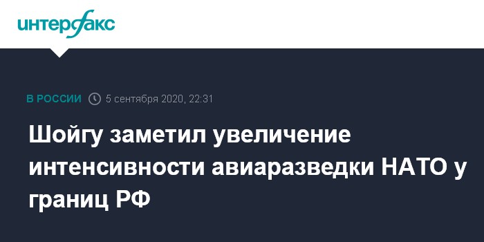 "В последнее время государства Североатлантического союза активизировали разведывательную деятельность. Интенсивность применения разведывательной авиации НАТО у границ России увеличилась более чем на 30% по сравнению с прошлым годом, в августе прошлого года - 87 полетов, сейчас - около 120", - сказал Шойгу журналистам по завершении Армейских игр - 2020 в субботу.