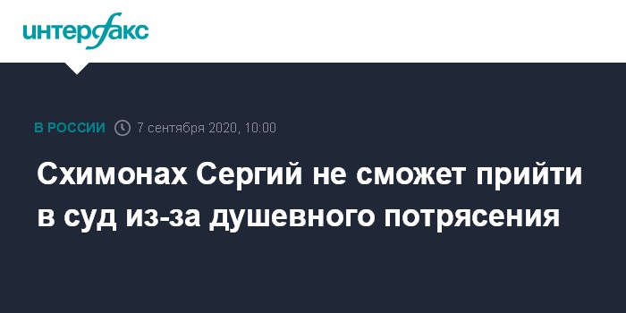 Схимонах Сергий не сможет прийти в суд из-за душевного потрясения