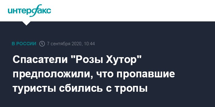 Москва. 7 сентября. INTERFAX.RU - Спасатели курорта "Роза Хутор" под руководством МЧС всю ночь и утро проверяли все тропы в районе Красной Поляны, разбитые для туристов, но не нашли пропавшую группу туристов из Твери. Об этом сообщили в пресс-службе "Розы Хутор".