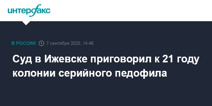 Суд в Ижевске приговорил к 21 году колонии серийного педофила