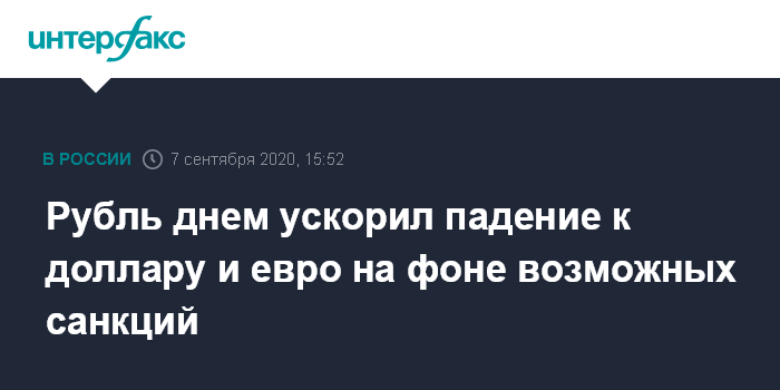 Как отмечают эксперты "Интерфакс-ЦЭА", рубль заметно ускорил темпы снижения к доллару и евро на старте торгов после новых заявлений представителей руководства Германии о возможных санкциях против России после отравления Навального. Как заявил официальный представитель правительства Германии Штеффен Зайберт, канцлер ФРГ Ангела Меркель не исключает увязывания позиции Берлина по проекту "Северный поток - 2" с ответом на ситуацию с российским оппозиционером Навальным.